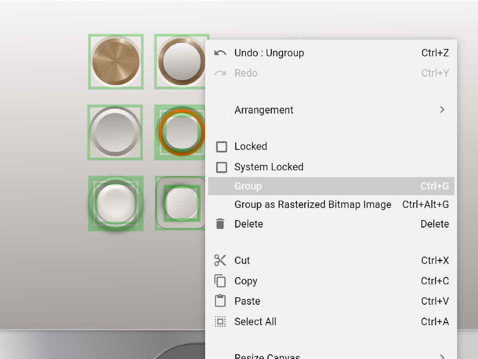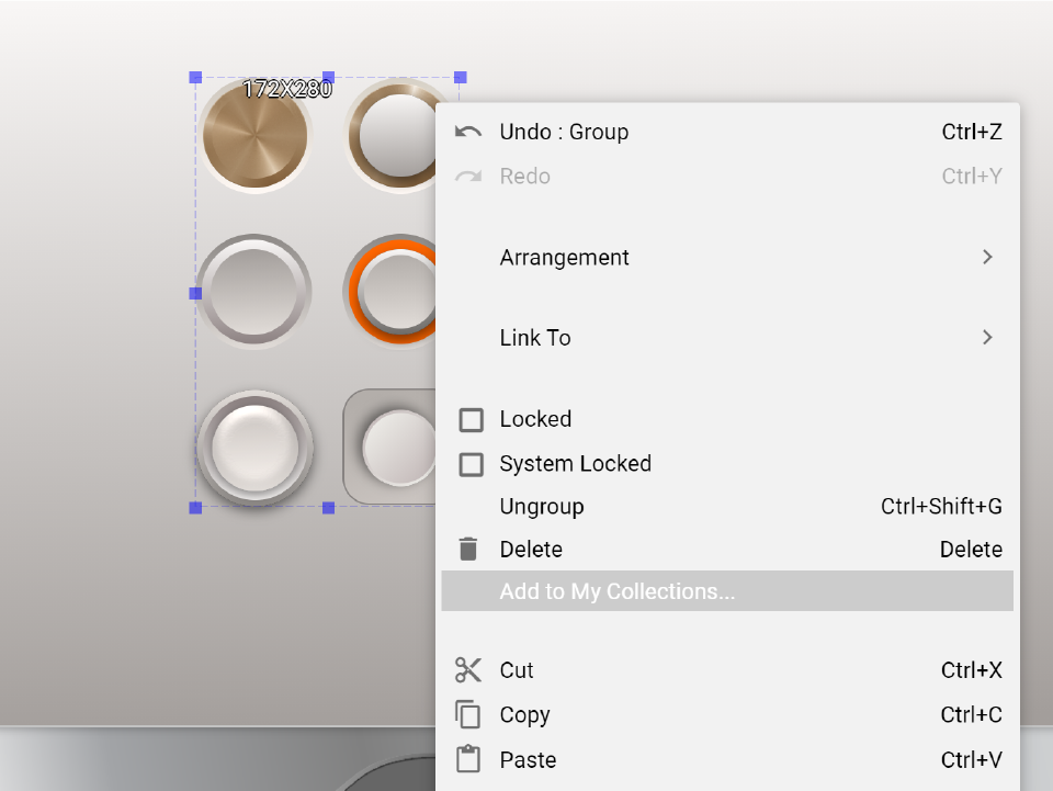 Select all the widgets and click the right mouse button for creating a Group. If only one widget is to add to My Collections, then please skip this step.
