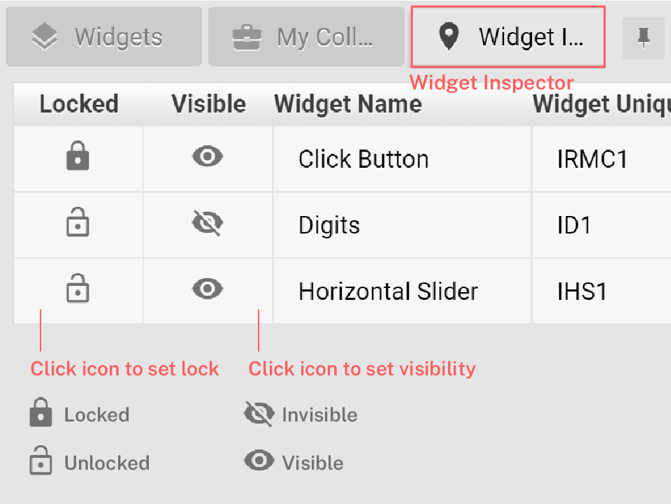This option is to lock the selected widget so that its properties are protected and cannot be altered. Once loced, the lock icon turns to gray.