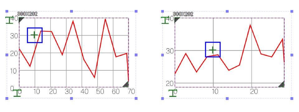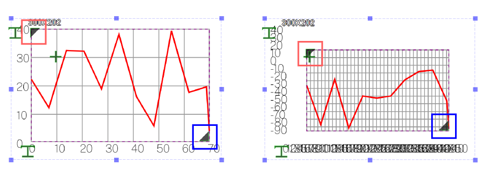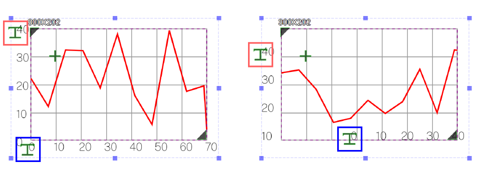Dragging green I-shaped handlers can change the position of the coordinates. The top-left handler controls the position of the Y-axle coordinates whereas the bottom-left handler controls the position of the x-axle coordinates.