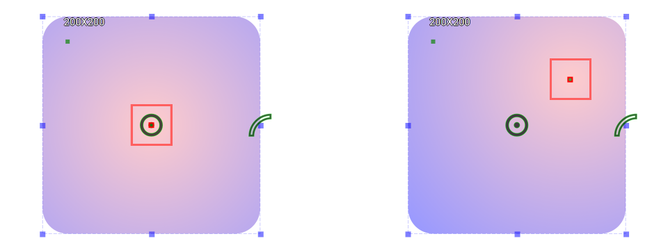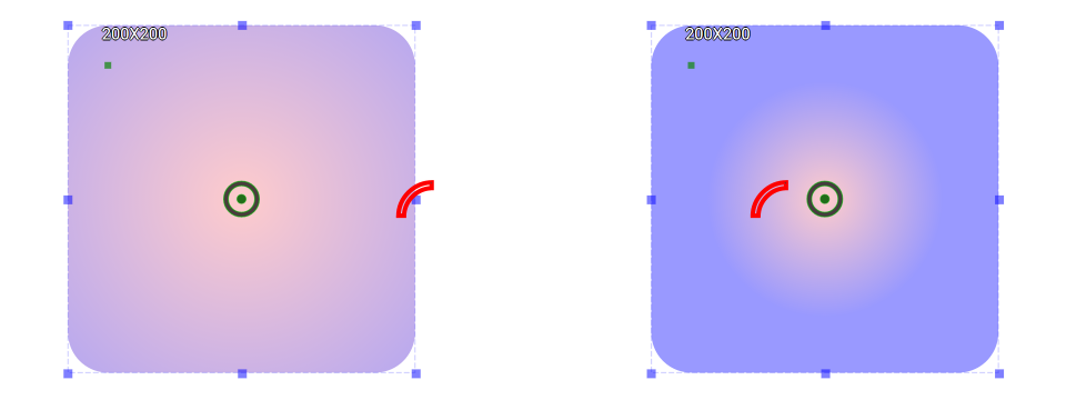 Dragging the green square dot in the center of the circle changes the center of the radial gradient.