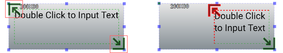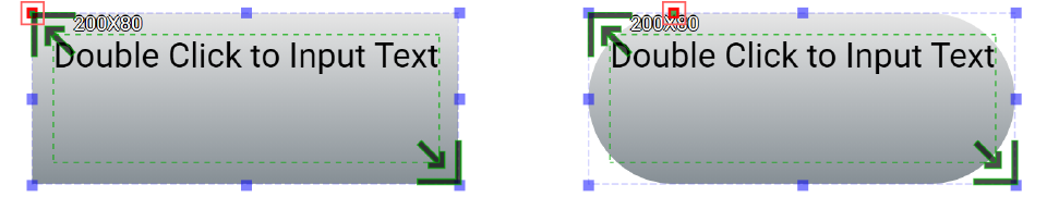 The green square dot at the top-left corner of the text box is used to change the radius of the box background corners. The background can be changed from a rectangle shape to an oval shape.