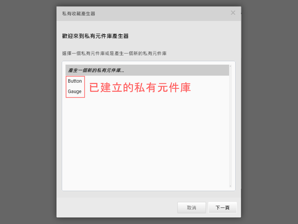 選擇是否建立新的私有元件庫或者使用現有的私有元件庫