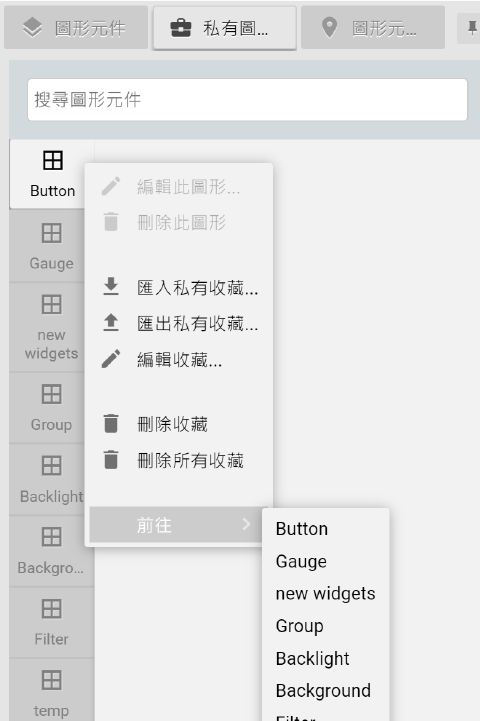 在私有圖形元件頁面點擊右鍵可進行匯入匯出編輯等操作