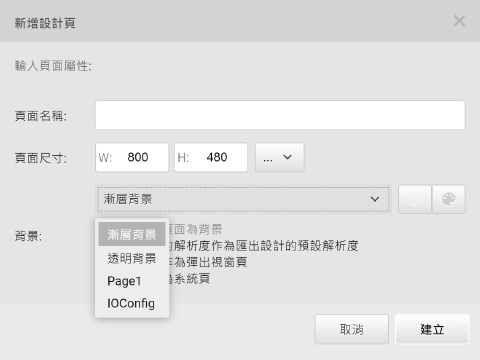 編輯頁面屬性:編輯頁面屬性,像是頁面名稱、頁面大小以及背景
