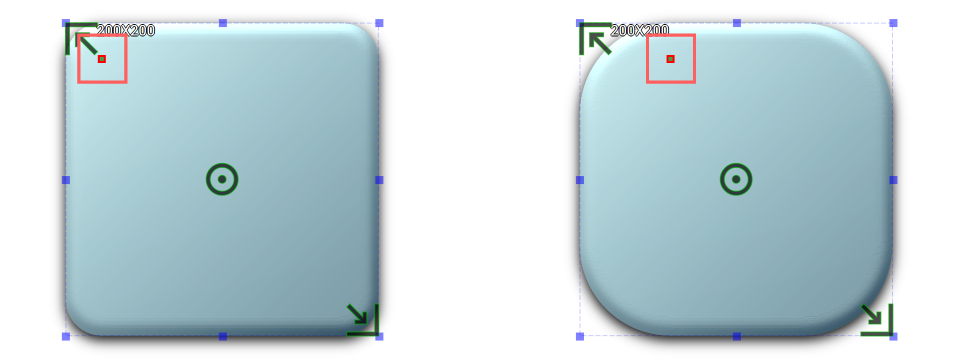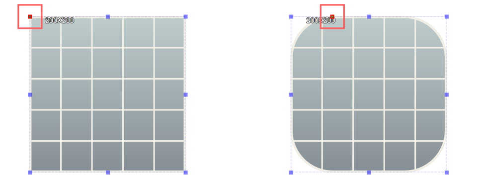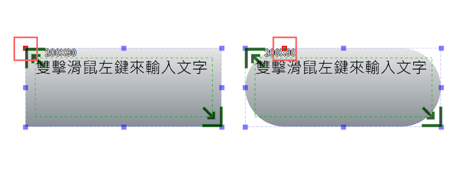拖曳綠色方塊圖示改變元件的圓角半徑