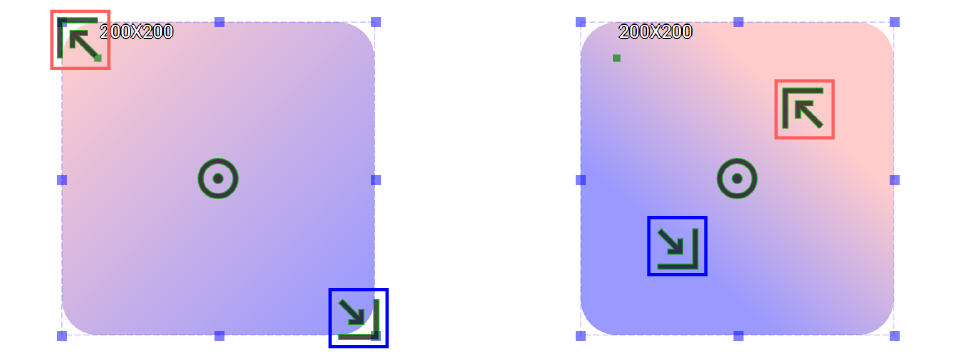 拖曳箭頭圖示改變線性漸層的位置,左上的箭頭控制主要顏色,右下的箭頭控制漸變顏色