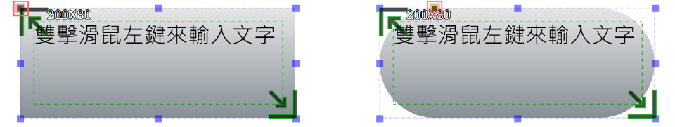利用拖曳左上角的綠色方塊改變背景的圓角半徑,可將背景從矩形變成橢圓