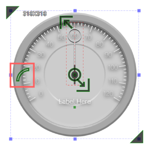| 綁定暫存器 | 暫存器的內容是最小資料值的話,指針會指向圓弧刻度開始角度,指針隨著暫存器數值增加而旋轉,直至暫存器是最大資料值時旋轉指針會指向到圓弧刻度結束角度 | Register Selector |