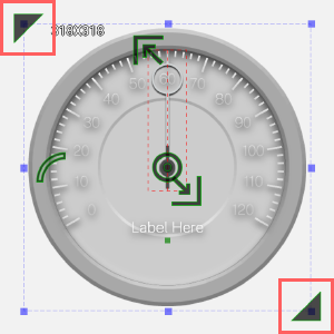 使用者用單一元件可以完成完整的表盤與指針設定,除了作為輸出用,還可以作為輸入元件,譬如結合圓形指針以及適當背景,可以做為觸控旋鈕使用。