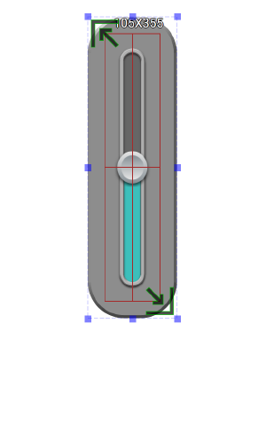 垂直條狀調節器的背景、進度條、進度條底色和滑鈕等,皆可分別載入不同尺寸的圖形,使用者可以根據需求,製作不同風格及形狀的進度條,適合使用於需要顯示特別指示訊息的進度條,譬如電池存量或液體槽的液體高度等。